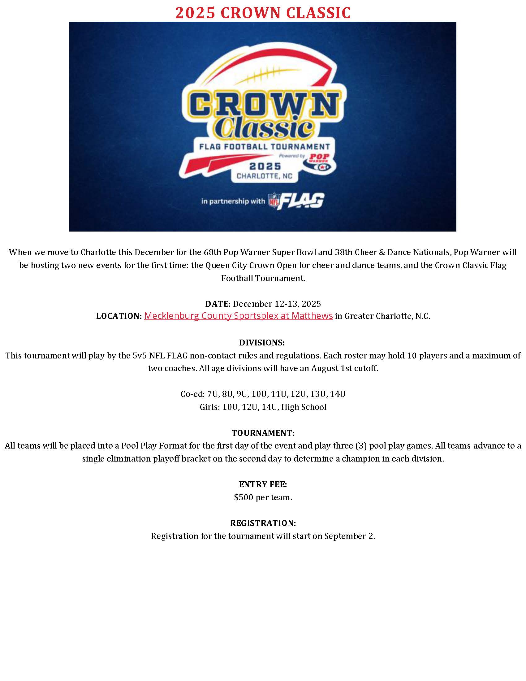 Looking for teams at all levels. Tackle players can play. Cheer leaders can play. Games will be played during the week
